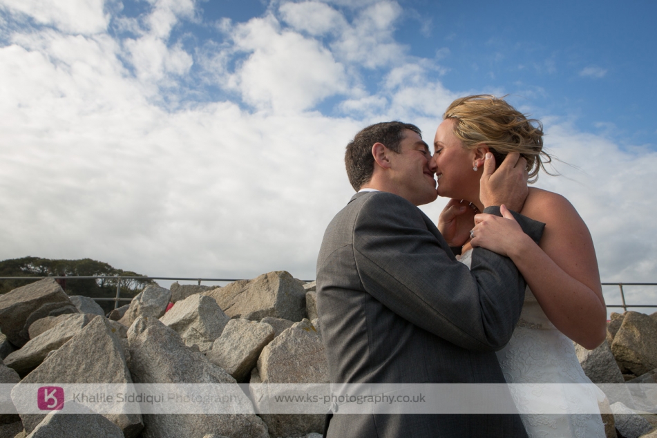 If possible I do try and take our couples off for shots together after the wedding breakfast, but as this is the end of October it'd be dark by the time we came out, so we went to Swanpool beach to get some couple shots including the car, and then headed to Gyllyngvase beach where we met the bridal party and grooms men for some fun shots on the beach before heading to St Michaels where we met the lovely Emma waiting to greet us.